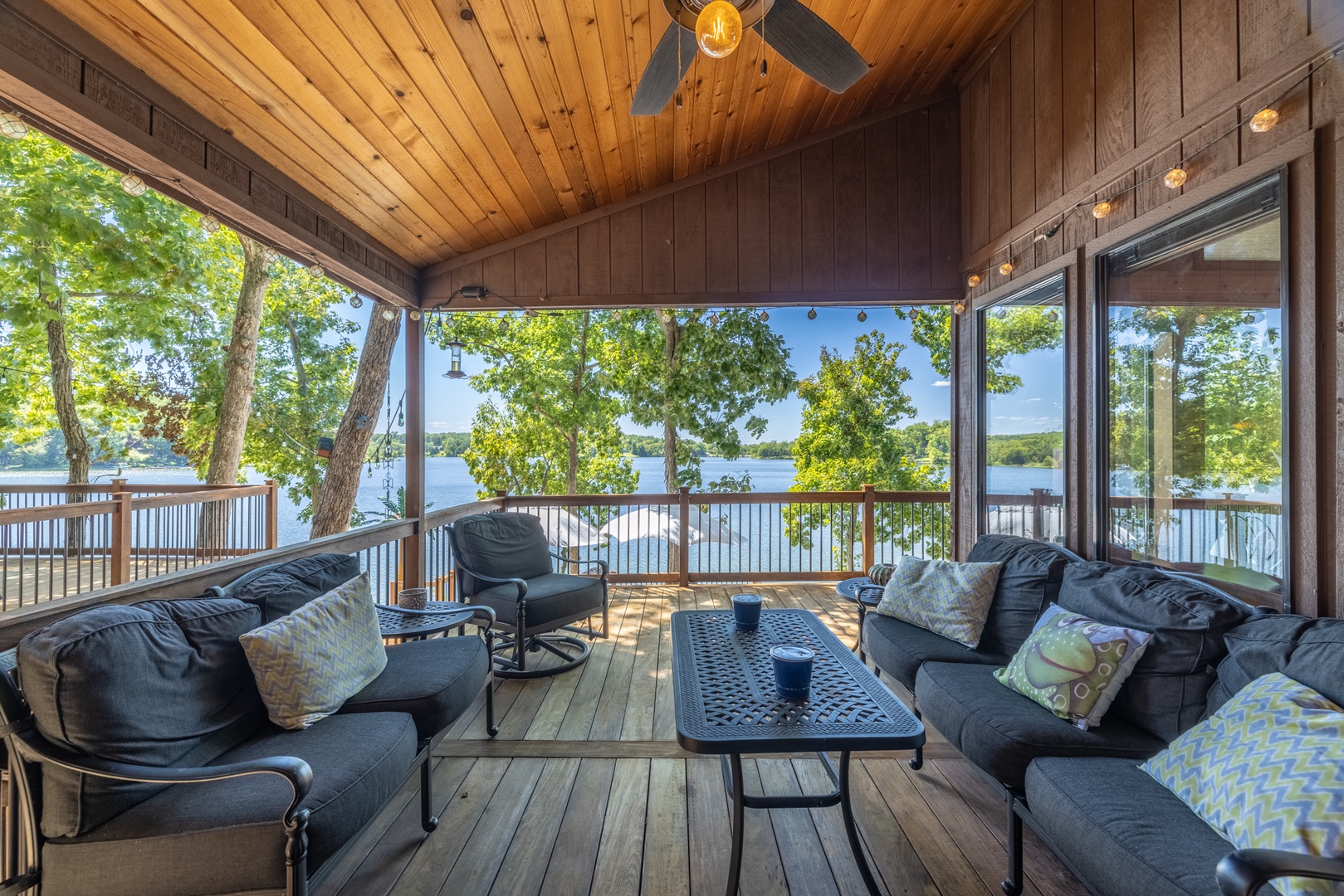 Experience high-end lakeside living right in your own backyard! Relax on the multi-level deck with numerous sitting areas and access to all sides of the site, or spend your day by the water with all of the resort-style amenities and water toys.