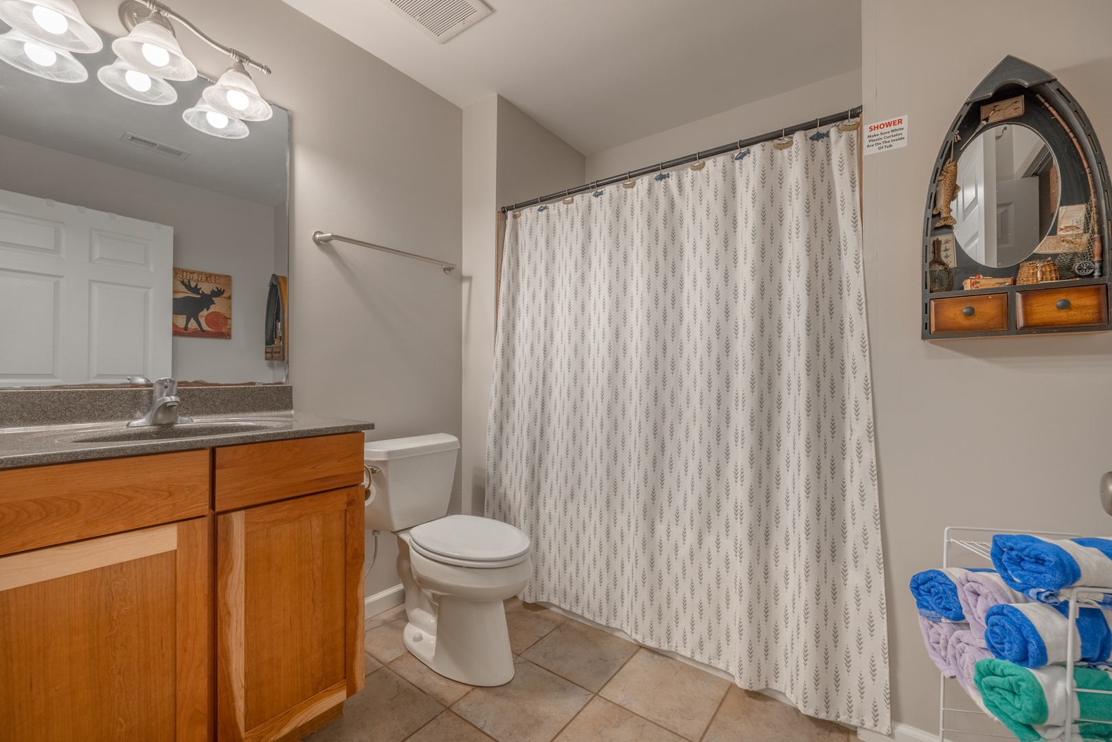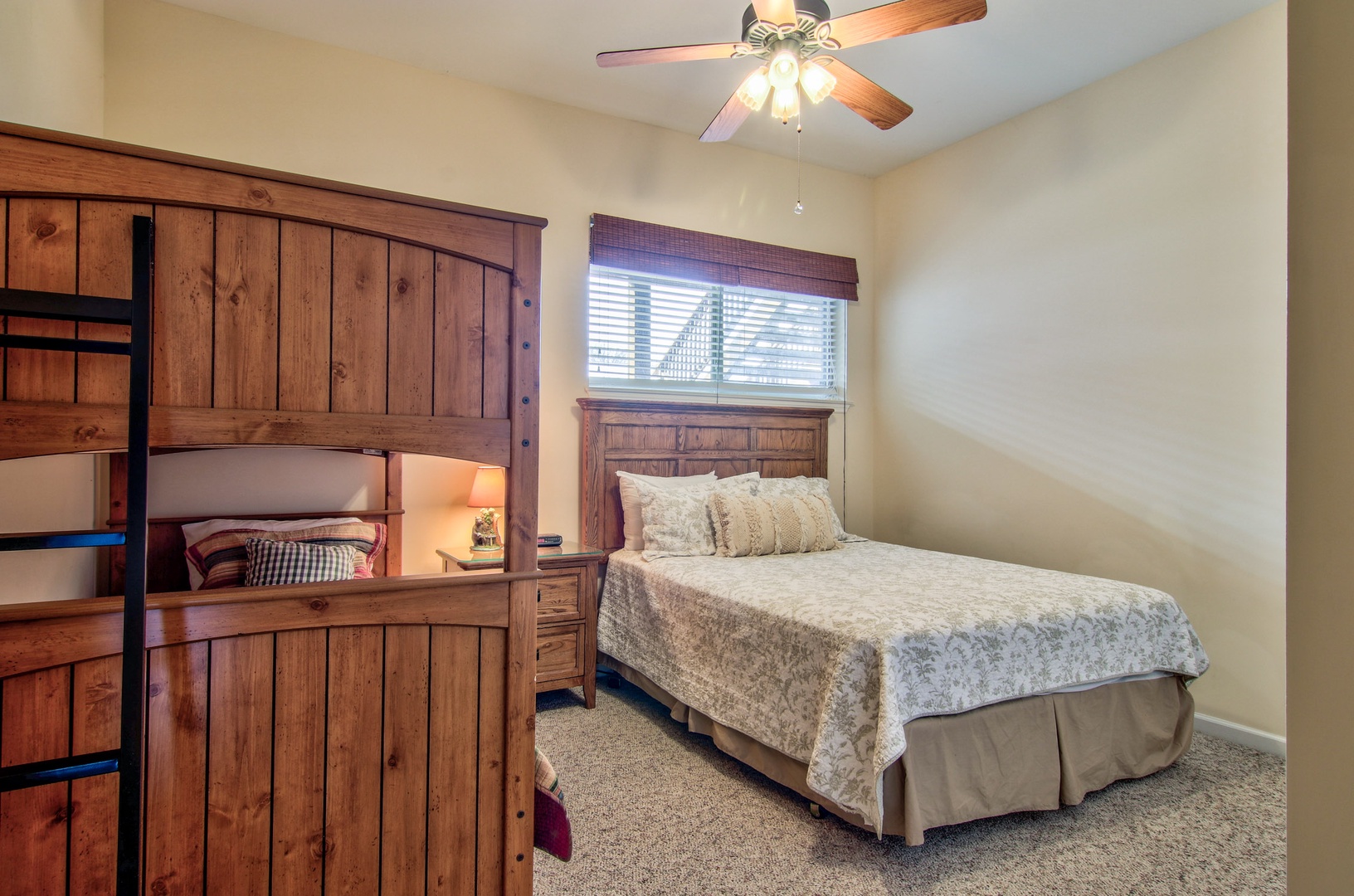 • Bedroom 2 - 1 queen bed, 1 set of bunk beds (twin over twin), private bath